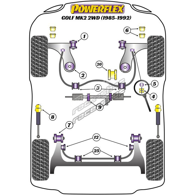 Powerflex Silentblok spodního uložení motoru, Diesel Volkswagen Golf MK2 2WD (1985 - 1992)