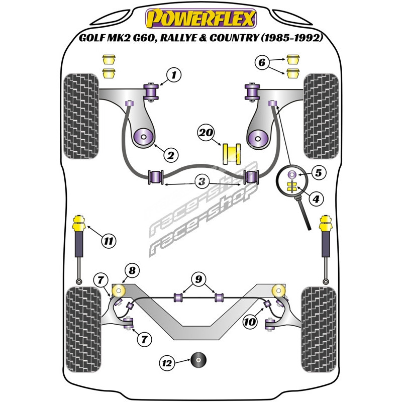 Powerflex Silentblok uložení zadní nápravnice Volkswagen Golf MK2 4WD