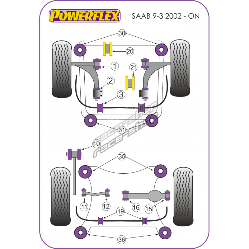 Powerflex Silentblok uložení předního stabilizátoru 24mm Saab 9-3 (2003-2014)