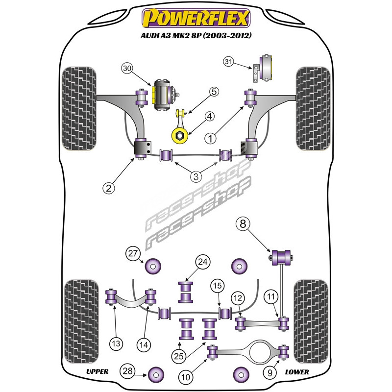 Powerflex Silentblok zadního stabilizátoru 19.6mm Audi A3 Quattro MK2 8P (2003-2012)