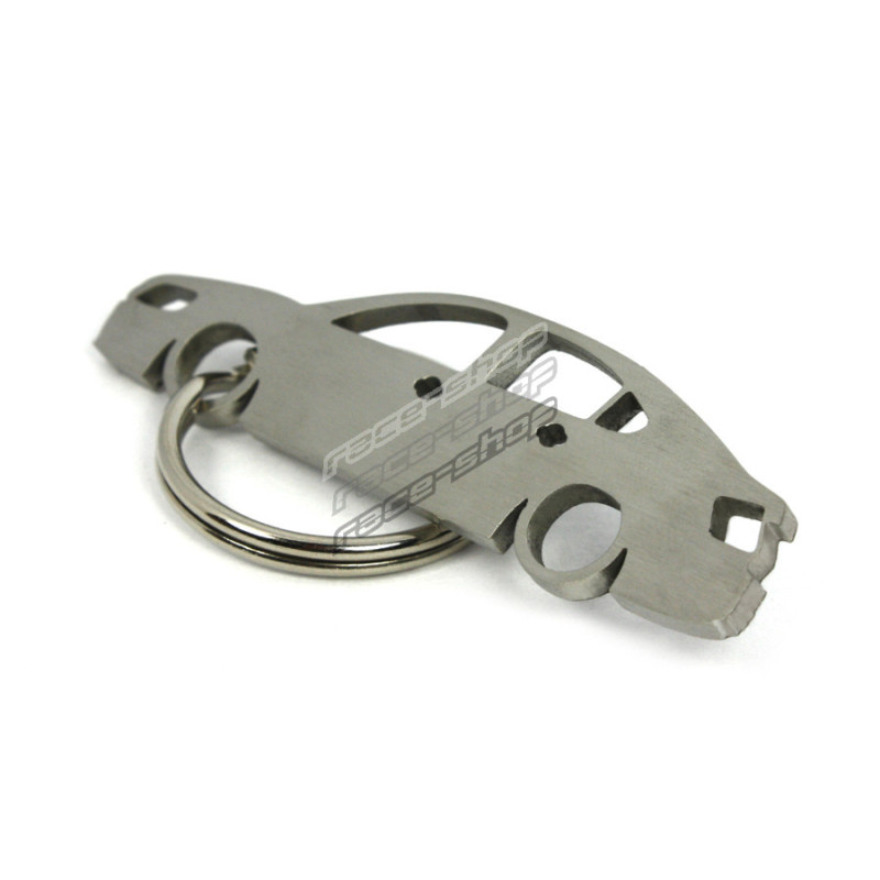 Klíčenka z nerezové oceli ve tvaru auta, s oboustranně leštěná.