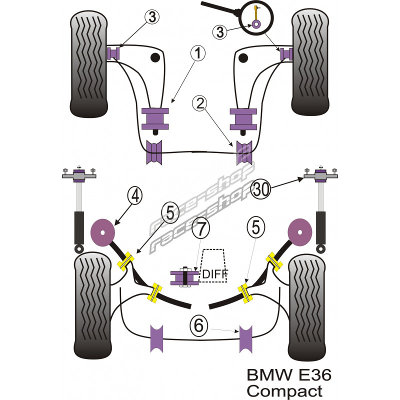 Powerflex Zadní silentblok spodního předního ramene BMW E36 3 Series Compact (1993-2000)