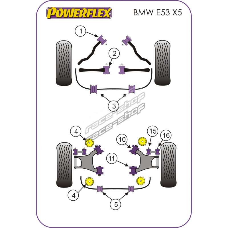 Powerflex Horní silentblok zadního vnějšího ramene BMW E53 X5 (1999-2006)