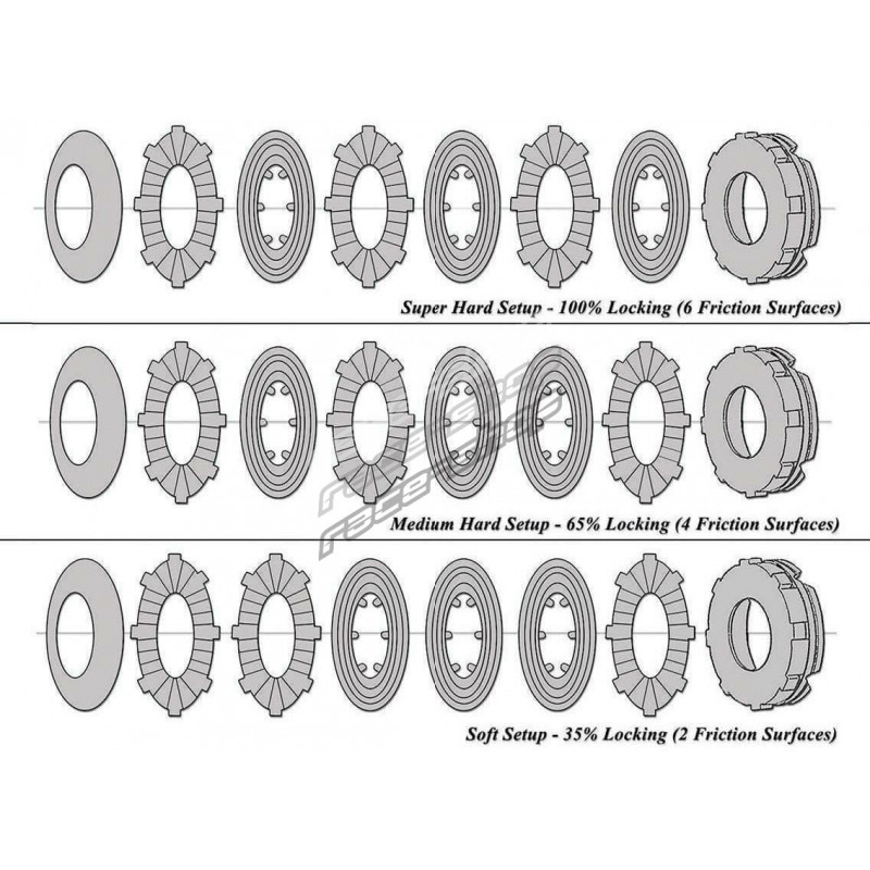 1.5 směrný diferenciál je podobný s 2 směrným ale poskytuje menší svornost při zpomalování. S optimálním výkonem během akcelerace a také s jemnou svorností při zpomalování je nejlepším pro klasické silniční závody.