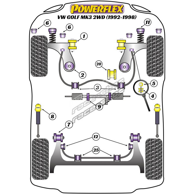 Powerflex Silentblok předního stabilizátoru 18mm Volkswagen Golf MK3 2WD (1992 - 1998)