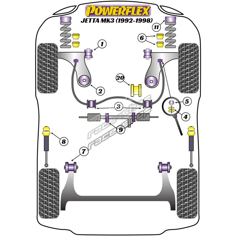 Powerflex Silentblok předního uložení 10mm Volkswagen Jetta MK3 (1992 - 1998)