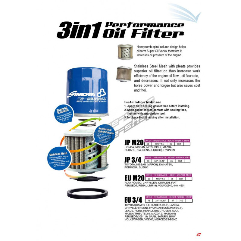 Olejový filtr Simota 3in1 - EU M20 * 1,5Pošlete obsluze obchodu dotaz k tomuto produktu.