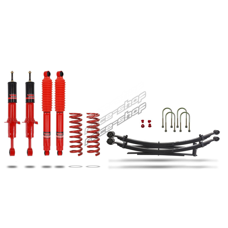 Každá sada obsahuje vysoce kvalitní tlumiče Pedders TrakRyder Foam Cell, přední vinuté pružiny, Zadní listové pružiny, U-bolty a montážní silentbloky. V některých aplikacích jsou také zahrnuty doplňkové vzduchové polštáře pro lepší řízení proměnných nákladů. Plně sestavené přední tlumící nohy Ezifit umožňují rychlou instalaci bez potřeby kompresorů pružin nebo opětovného použití komponent.