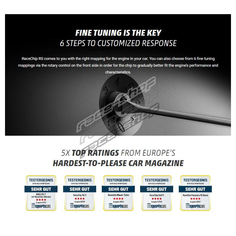 RaceChip® je společnost zaměřená na softwarové úpravy automobilů již od roku 1994 pomocí přídavných jednotek. Tyto přídavné jednotky se instalují mezi motor a sériovou řídicí jednotku motoru. Funkcí tohoto produktu je přijímat a vyhodnocovat signály řídící jednotky (několik tisíckrát za sekundu), následně je modifikovat tak, aby došlo ke nárůstu a optimalizací výkonu. Instalace je velmi jednoduchá (do 10-15min.) A bez ztráty záruky u nových vozidel. Produkty této společnosti nezasahují do základního systému automobilu, což zachovává všechny původní funkce aktivní. Firma RaceChip® je TÜV certifikována od roku 2009.