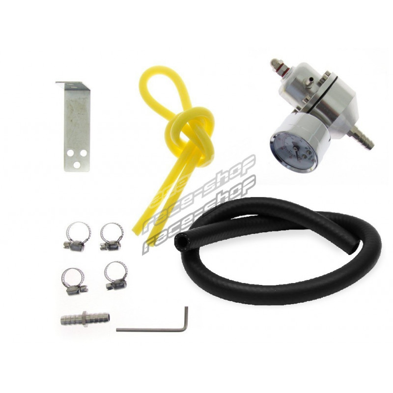 Univerzální benzinový regulátor tlaku paliva (FPR) s manometrem. Regulace až do 10 barů, manometr s glycerinovou náplní, mechanická i podtlaková regulace, v ceně veškerý montážní materiál.Pošlete obsluze obchodu dotaz k tomuto produktu.