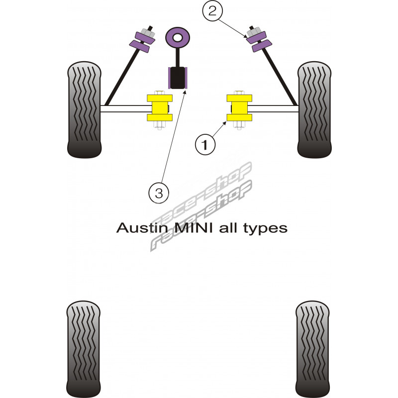 Powerflex Sada silentbloků zadní nápravnice (od roku 1976) Rover Rover Mini