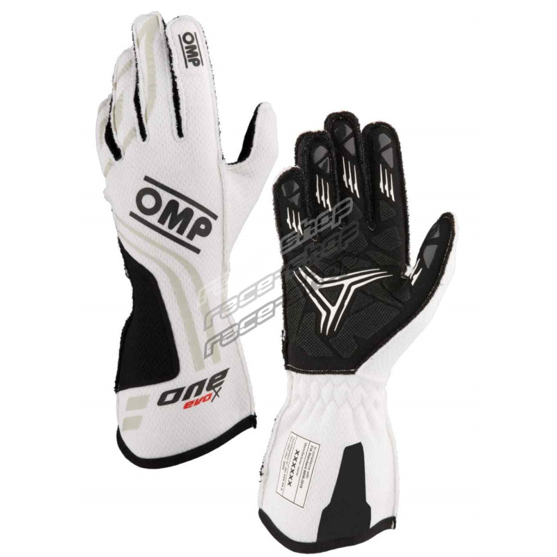 Závodní rukavice OMP ONE EVO X my2024 s FIA homologizací (vnější šití) bílá