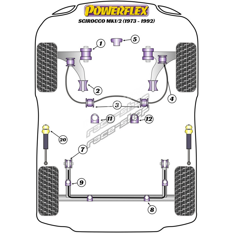 Powerflex Silentblok uložení motoru Volkswagen Scirocco MK1/2 (1973 - 1992)