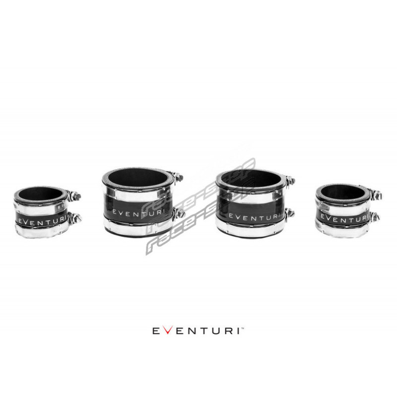 Napojení karbonových chargepipes k turbodmychadlům je v případě Eventuri řešeno pomocí CNC frézovaných přírub využívajících OEM těsnění, které zajišťuje potřebnou těsnost. Každá příruba je frézována z leteckého hliníku a eloxována do černé barvy. Spojení mezi přírubami a karbonovými chargepipes je pak zajištěno vysoce kvalitními silikonovými spojkami a sponami z nerezové oceli.
