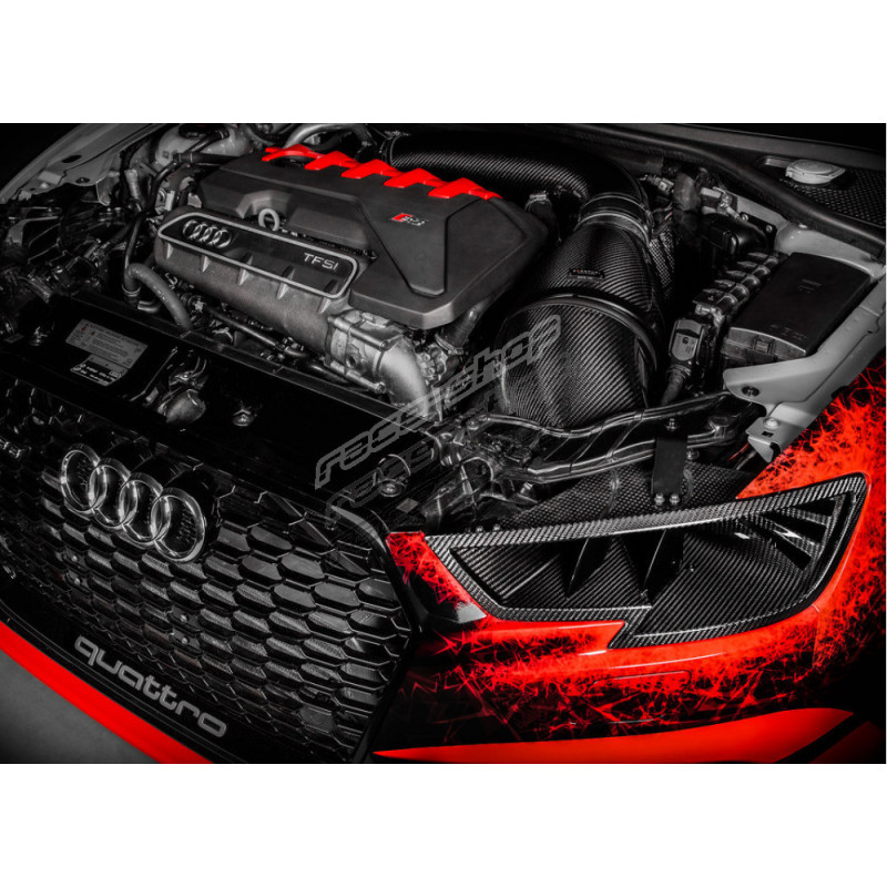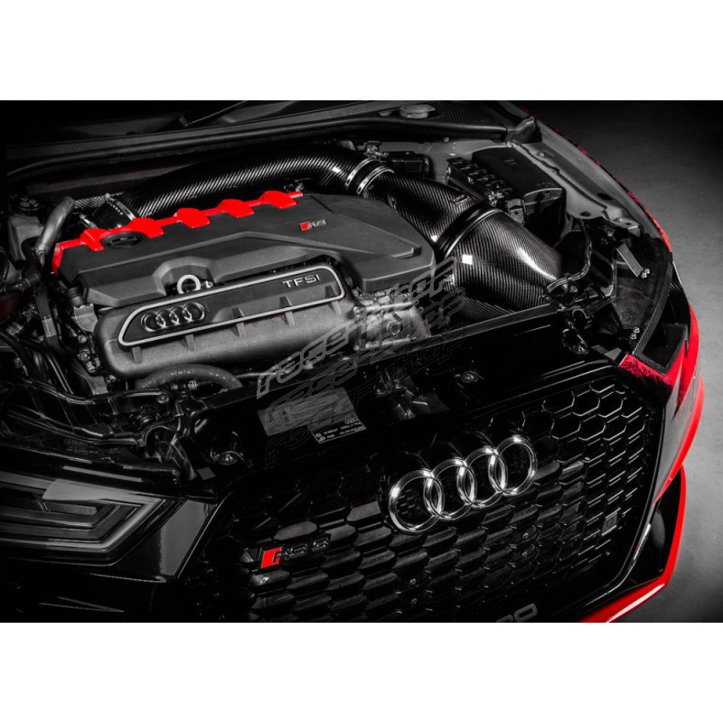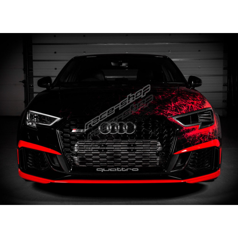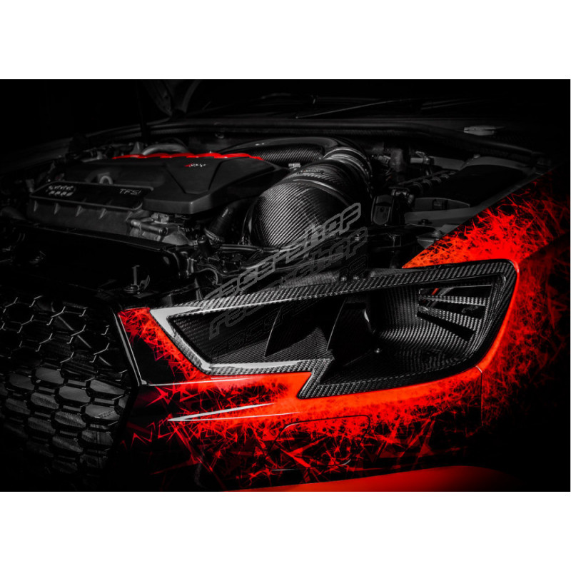 S tím, jak si Audi RS3 získává stále silnější pozici mezi vozy soutěžícími na okruhu nebo sprintovacích drahách, rozhodli jsme se posunout možnosti tohoto vozu ještě dále. Eventuri náhrada světlometu plně nahrazuje originální díl a přímo navazuje na airbox sání Eventuri. Zároveň obsahuje dvojité žebrování, které směruje nasávaný vzduchu přímo do sání. Instalací nasávání skrz náhradu světlometu je také odstraněn originální nasávač za maskou chladiče. Tento prostor je tak nyní zcela využíván pro přímé chlazení motoru.