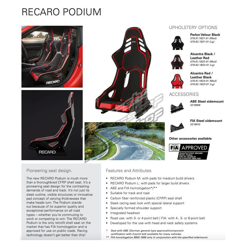 FIA homologated for a complete seat + RECARO brackets