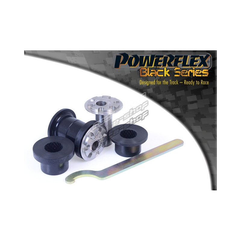 Poznámka: PFF85-201G umožňuje nastavení odklonu +/- 0,5 stupně. V případě montáže na Audi TT MK1, S3 a A3 MK1 a Seat Leon & Cupra MK1 se hodí pro starší modely s o průměru 30 mm. Hodí se jak pro lisovaná, tak pro litá ramena u modelů Leon & Cupra MK1 a A3 MK1 2WD. Zkontrolujte prosím originální pouzdro velikost. Pozdější vozy mohou používat větší (nenastavitelné) 45mm pouzdro PFF3-501. Pouzdro PFF85-201G je vybaveno CNC obráběným pouzdrem z nerezové oceli s s odsazeným otvorem, který lze otáčet pomocí našeho na míru vyrobeného nástroje (dodává se), což poskytuje +/- 0,5 stupně nastavení sklonu vozu. Pro verzi tohoto pouzdra bez odsazení použijte PFF85-201. Vroubkované čelní plochy zabraňují otáčení pouzdra, aby se zachovala geometrie zavěšení. pFF85-201GBLK zvyšuje tuhost oproti původnímu dílu o 15 %.