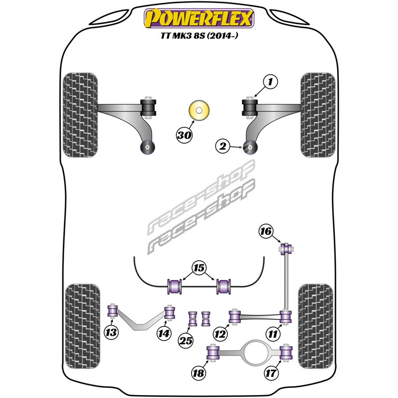 Powerflex Zadní silentblok předního ramene, nastavitelný Audi TT Mk3 8S (2014 on)