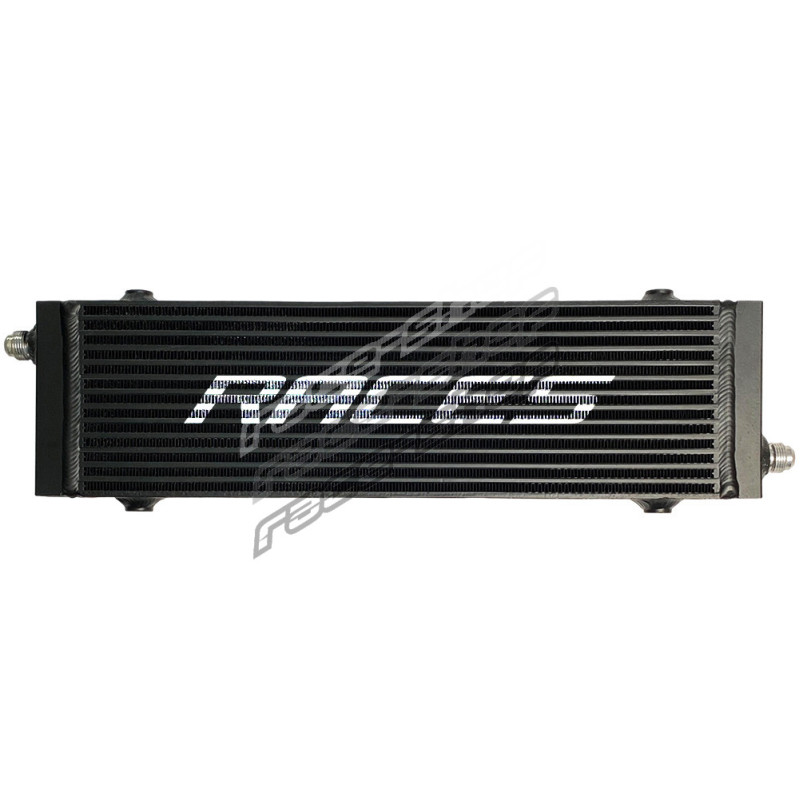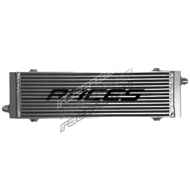 Heavy Duty RACES MOTORSPORT oil cooler for cooling the oil v your engine, transmission, steering or differential. Ideal motorsport accessory to reduce temperature. Large side containers provide increased oil capacity compared to conventional oil coolers. The chamfered outlets force the fluid to use the entire surface area of the cooler which helps to reduce the temperature of the fluid flowing through the cooler faster. For maximum efficiency, we recommend the optional installation of a fan.