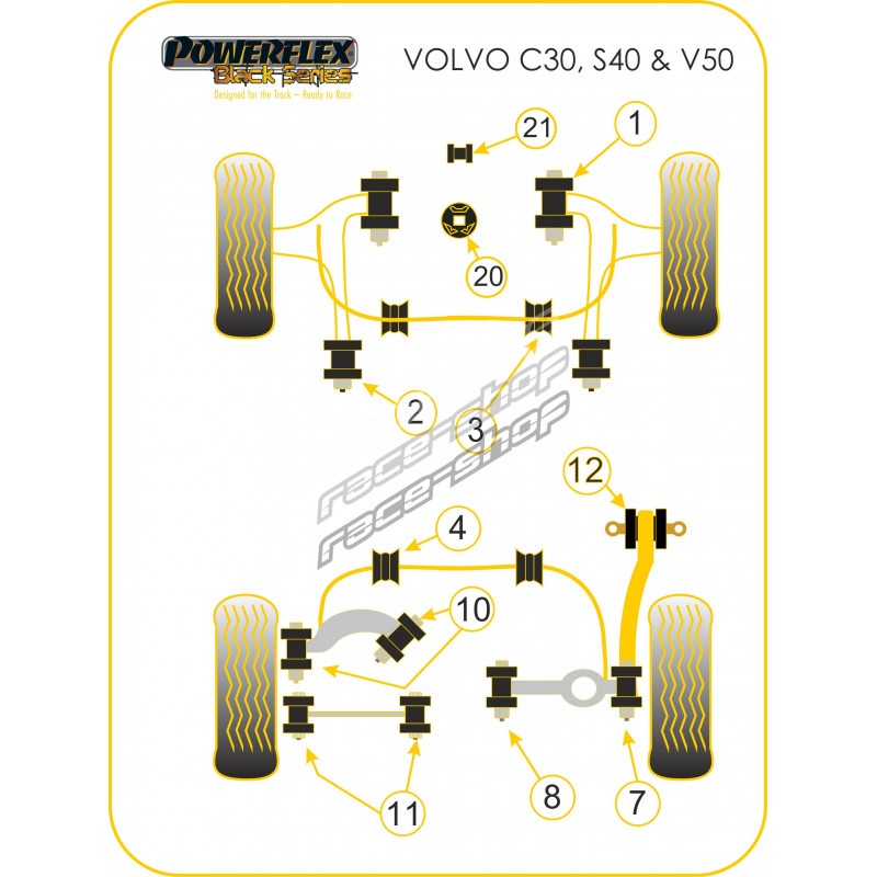 powerflex přední silentblok předního ramene 14mm volvo v50 (2004+)